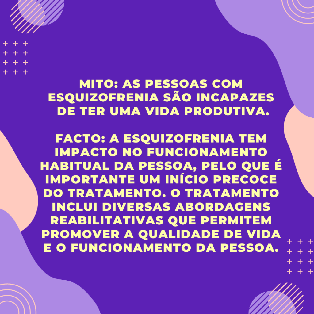 A esquizofrenia é uma doença crónica para a qual existe tratamento eficaz que permite melhorar significativamente a qualidade de vida das pessoas com este diagnóstico. É tanto mais eficaz quanto mais precocemente for iniciado.