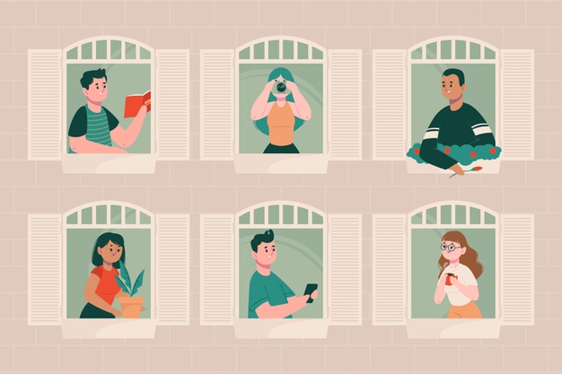 Mesmo a partilhar os espaços comuns com outras pessoas que vivam em casa consigo, deve evitar contacto social. Idealmente, deve ser mantida a distância de 2 metros entre indivíduos.